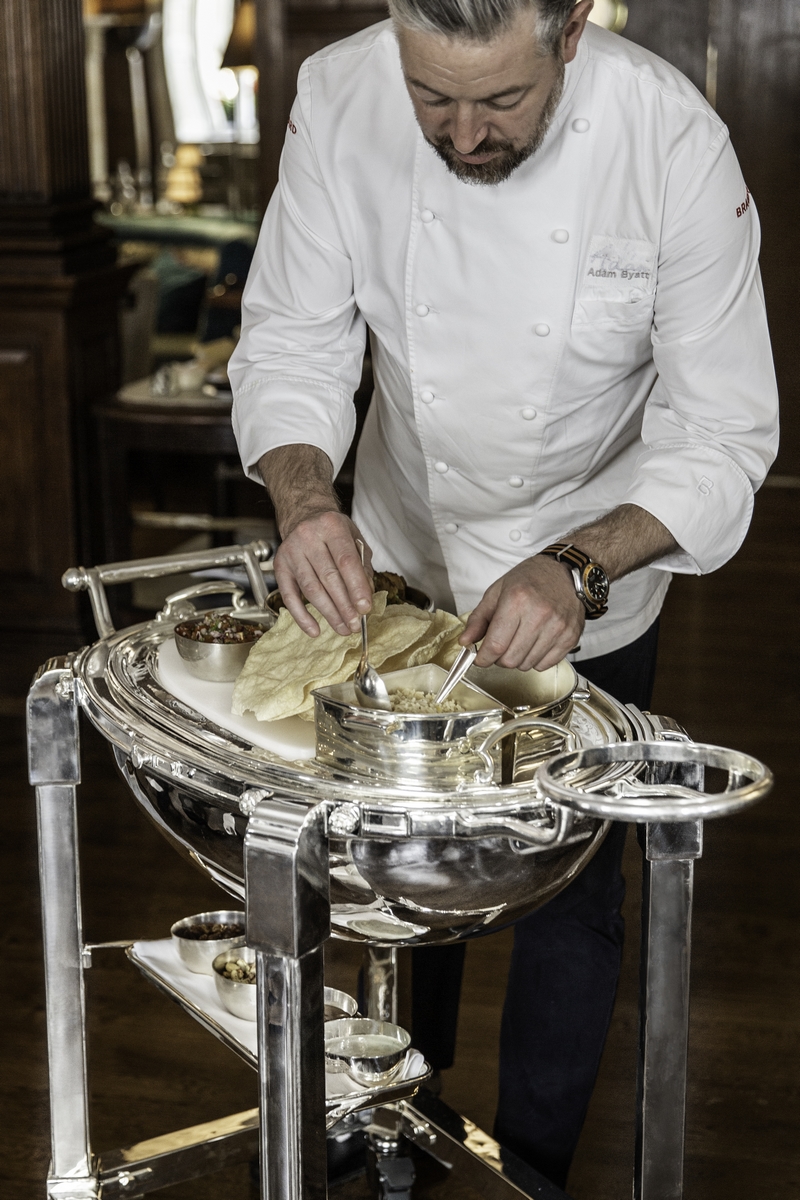 Michelin-starred Chef Adam Byatt is bringing back the excitement of great British cooking at Brown’s Hotel’s Restaurant; v