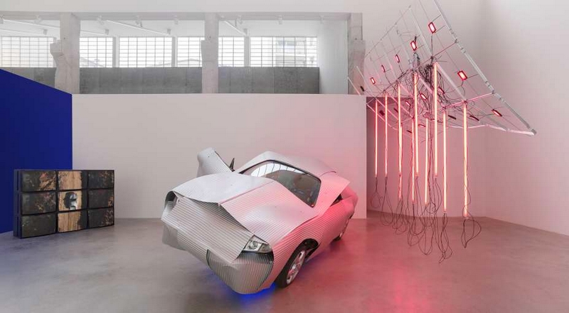 For the 2019 edition of Milan Design Week and the Fuorisalone, RIMOWA teamed up with the contemporary art magazine and creative studio KALEIDOSCOPE for a multi-platform project encompassing a short film, an installation and a print publication. For the installation at the Spazio Maiocchi in Milan, the collective called on Spanish designer Guillermo Santomá. Known for fusing his sense of color and affinity with industrial materials and processes, Guillermo Santomá creates surreal objects and spaces suspended between art and function. Inspired by the idea of a conceptual gas station, he created a light and sound sculpture comprising a car customized with a body made of the aluminum used for RIMOWA luggage. Entitled “GAS” after Ed Rusch’s iconic series Twentysix Gasoline Stations, the installation underscores the artist’s fascination with the US West Coast.