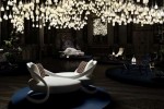 The Maison unveiled the ten newest additions to Objets Nomades at the Palazzo Serbelloni in Milan during Milan DesignWeek’s Fuorisalone event series. The new objects include the spectacular Anemona glass-topped dining table whose undulating base is covered with soft natural leather, created by Milan-based Atelier Biagetti. The Italian duo Zanellato /Bortotto made their debut with Mandala, a three-panel screen of intricately woven leather inspired by nomadic craftsmanship. Marcel Wanders has enriched the collection with four new objects: the Diamond Sofa and Armchair with intertwined ash bases and rich leather upholstery; the Venezia lamp inspired by traditional Venetian lanterns; and the Diamond vase, made of red handblown Murano glass.