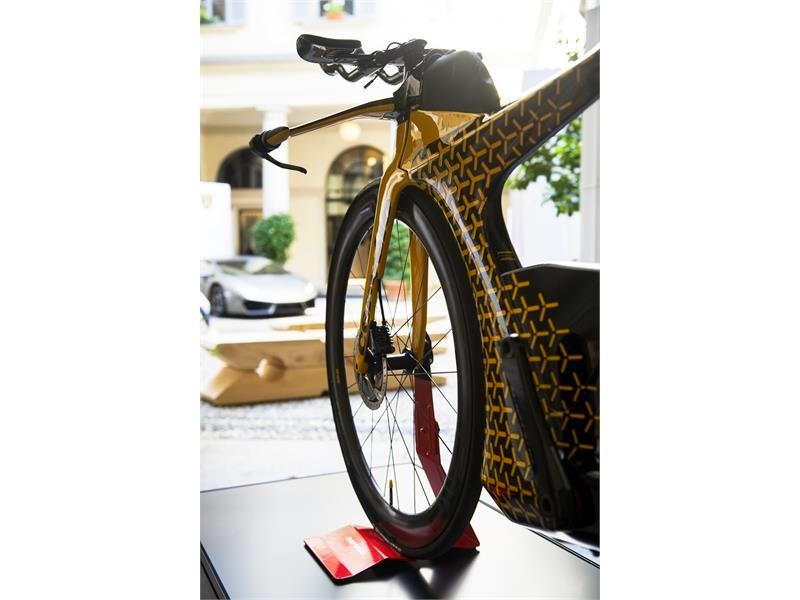 Inside, the Palazzo becomes The Lounge Milano for Fashion Week, an exclusive space designed to promote key events and offer guests a luxury experience in perfect Lamborghini style. Furnished with items from the Riva 1920 Authentic Living line designed by Karim Rashid, it is the ideal setting to display Collezione Automobili Lamborghini’s Apparel Collection. The limited edition triathlon P5X bicycle is also an attention-grabbing addition to the display: a co-branding project with Cervélo and designed in conjunction with Centro Stile Lamborghini.