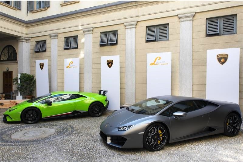 A Huracán Performante and a Huracán RWD on show in the courtyard welcome guests to the world of Lamborghini.