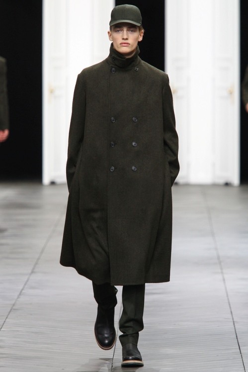 Military inspired Dior Homme show for Fall Winter 2012 2013 season was a proof that sharp tailoring can be mixed with military shapes, capes and khaki tones.