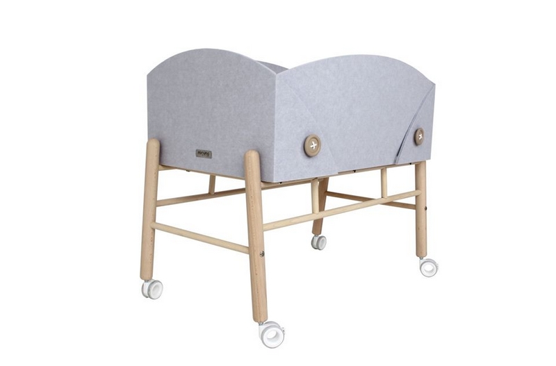 The cradle, created for Micuna, offers with its design four products in one. This mini-cradle evolves with the baby. It also uses sustainable materials that protect the baby from outside noise.