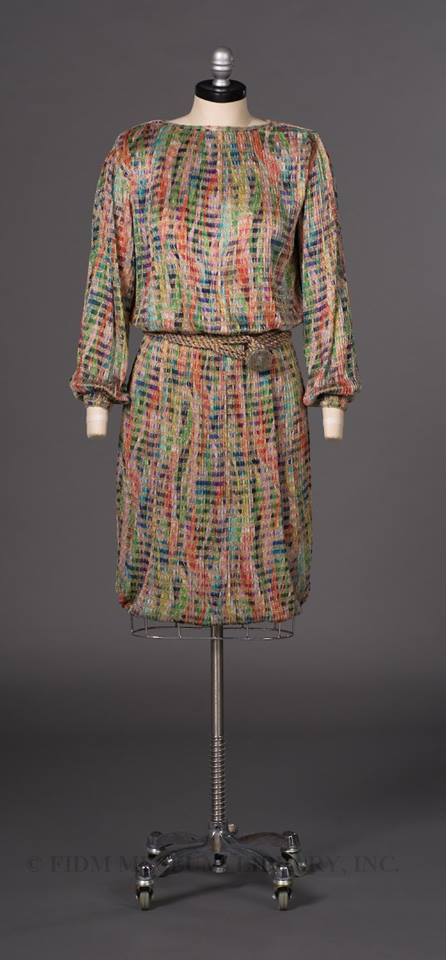 MISSONI ART COLOUR showcases over 60 years of fashion items alongside paintings by leading 20th century European artists, and previously unseen textile studies, paintings and Arazzi by Ottavio Missoni. The personal artwork of Missoni is mixed with modernist masterpieces, including the work of Sonia Delaunay, Lucio Fontana and Gino Severini, that have influenced Ottavio and Rosita in the development of their signature graphic style.