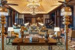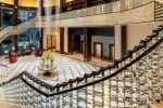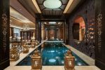 Graceful geometric lines flow throughout the high-end interiors, creating a repeated structural motif that quietly references the heritage of the region. Dark wood and rich textures combine with intricate embroidery, bejeweled paneling, bronze and wood carvings embellished with flashes of shimmering gold, mother of pearl inlays and imposing crystal chandeliers creating a dramatic Egyptian aesthetic with modern execution. A striking mural entitled “The Pink Sun” graces The St. Regis Bar. Staunchly modern in its execution, the mural references ancient Egypt and the birth of a modern civilization.