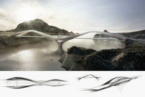 Die frei schwebende Brücke „The Flying Bridge“ in der Mercedes-Benz Future World hat zehn Fahrspuren, die alle unterschiedlichen Straßenarten integriert: traditionelle Schnellstraßen ebenso wie eine Hochgeschwindigkeitsstrecke für autonomes Fahren ;