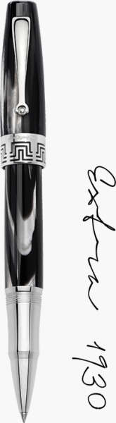 Extra 1930 was designed for people who love classic design, original colours and decorations. A manifestation of Montegrappa values, Extra 1930 combines the innovation of state-ofthe- art technical solutions with the tradition of its aesthetic approach. Extra 1930 is available in Turtle Brown Celluloid, Bamboo Black and Black & White celluloid. The pen trim is in Sterling Silver.