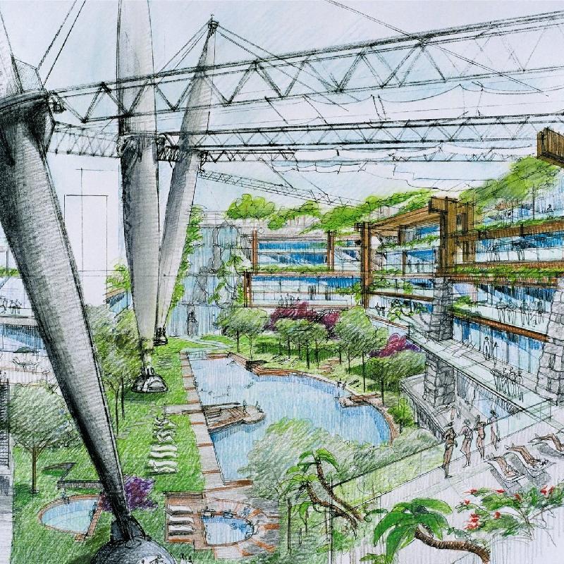 The Global Meeting Place at MOON will be a spectacular multi-level lounge, planet Earth’s largest. Based on an Alien Space crafts unscheduled crash landing, The Global Meeting place is the perfect venue to enjoy an out-of-this-world cocktail or two after a day touring the Convention Center or prior to an Event Center show.