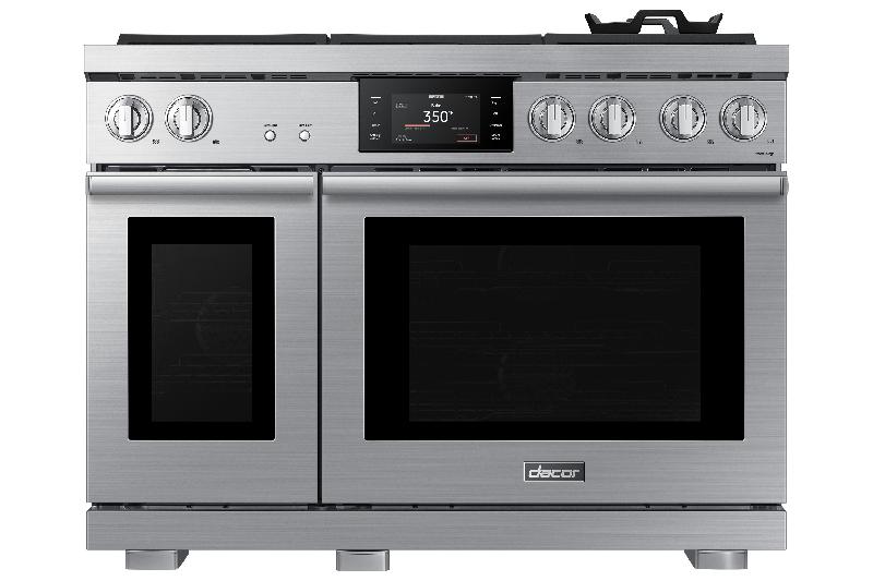The 48-Inch Transitional Range has been honored as a CES® 2023 Innovation Awards Honoree, solidifying its status as an exceptional cooking appliance. With its largest capacity yet, this range enables users to prepare multiple dishes simultaneously, accommodating even the most extensive cooking endeavors, such as a holiday turkey. Dacor has incorporated cutting-edge technology into this range, including Air Sous Vide, Air Fry, and Steam-Assist cooking functionalities, expanding the culinary possibilities for homeowners. The Dual Four-Part Pure Convection system ensures zero-flavor transfer between dishes, allowing for simultaneous cooking without compromising taste. The range-top features 22K BTU SimmerSear™ brass burners, which offer a perfect balance of power, style, and versatility, enabling users to simmer delicate sauces or sear meats with precision. The Auto-Tilting 7-inch LCD touch screen, complete with WiFi-enabled SmartThings™ connectivity, serves as a culinary command center, providing voice and remote control. This feature also includes step-by-step recipes and guided cooking options, ensuring a seamless cooking experience. Furthermore, the Illumina™ Knobs enhance the range’s modern aesthetic, coming to life when interacted with and providing confirmation of burner status from a distance, instilling peace of mind in the user.