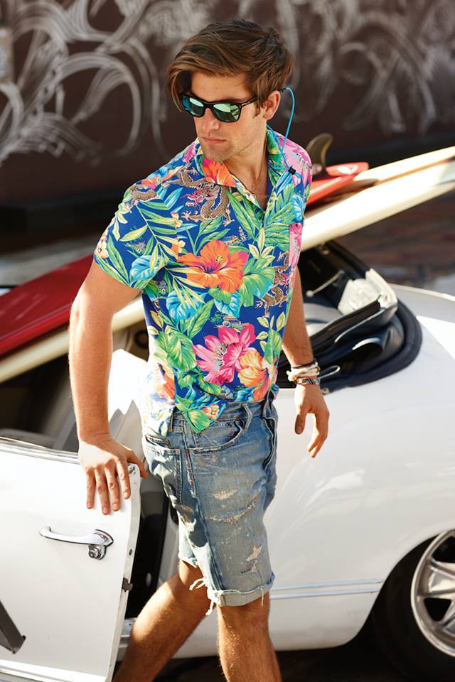 Look into the color and print trends. While floral may not be something for you, a floral trend for men isn’t about pretty blouses. Think Hawaiian style floral. Blue is supposed to be a popular color for menswear this summer, so look for different hues of blue to mix in with your baggy jeans and cargo shorts (which never go out of style, do they?).