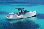The D34 yacht offers an exclusive deck, with large areas of solarium and seats both stern and bow, made to enjoy to the maximum with friends and family on board. Its two hidden outboard engines favor economical maintenance and improve acoustic comfort. In the interior, a fully equipped bathroom and a double stern cabin offer the desired comfort.