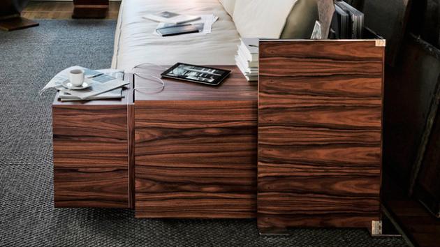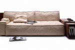 The sofa system designed by Philippe Starck for Cassina has an incorporated electrical re-charging station, a USB charger and a Duracell Powermat wireless charging solution all discreetly concealed inside the box-cupboard.