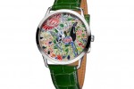 At this year’s Baselworld, also unveiled the Slim d’Hermès Mille Fleurs du Mexique – a unique watch issued as a limited and numbered six-piece edition. Hermès adopts a mother-of-pearl dial as a canvas on which to highlight the art of miniaturepainting.