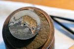 The panther – the only non-engraved element – is miniature enamel painted using the “Grand Feu” enamelling technique. The enamel powder is applied with a brush and alternately mixed with water or oil. To fix the material in place and for each new colour, the piece is fired at an extremely high temperature. The micro- fragments melt and are transformed into glass.
