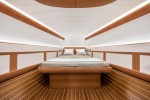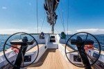 The latest generation sail plan has also been designed with easy sailing in mind. A few touches transform the Nautor ClubSwan 50 into a docile cruiser, perfect for a couple. In moderate winds the running backstays can be stowed at the mast, whilst in stronger breezes the double reefed mainsail passes easily in front of the backstays that can be fixed in position and need no adjustment. The furling Genoa is easily handled in any condition, whilst in strong winds the generous J allows for a convenient staysail to be set.