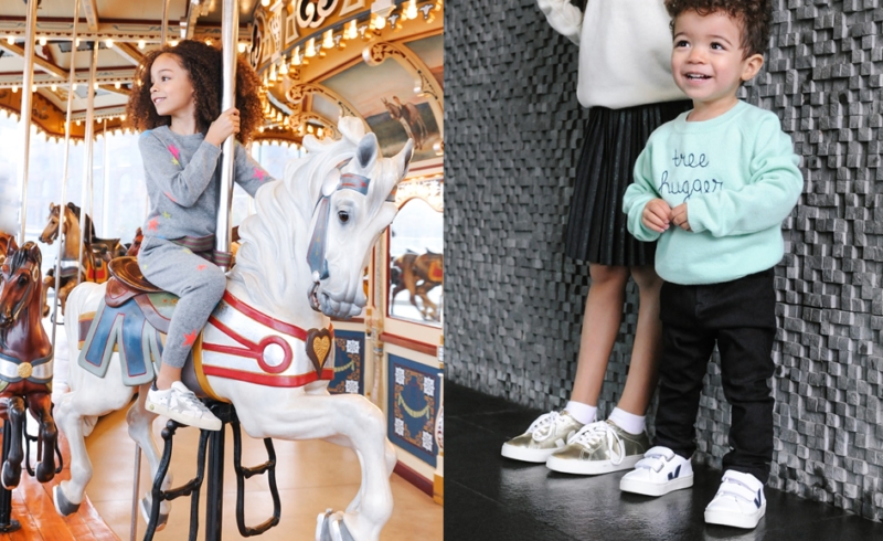 The collection features beloved cult offerings from insider fashion brands such as Yeah Right NYC Kids offering their covetable minimal white tees, alongside cozy embroidered artisan cardigans from Alanui Kids. ATM Kids and Chinti & Parker Kids offer a sportier approach, comprising relaxed styles that elevate comfort and highlight the capsules’ timeless appeal. Lingua Franca Kids’ playful and charming designs, add an amusing touch to the collection with light-hearted embroidered messages that read ‘Tree Hugger’ and ‘Cool Like That’, while Golden Goose Deluxe complements the collective with a line-up of ‘mini me’ versions of their most iconic sneaker styles, perfectly reflecting the brand’s laid back essence. Lastly, sustainable footwear brand Veja, interprets their signature sneakers in a palette of vibrant colors with creative illustrations, emblazoned with their hallmark ‘V’ monogram.