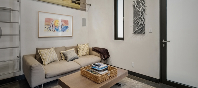 Showcasing unique architectural features, huge sliding glass doors, polished concrete flooring, high-end cabinetry and appliances, and smart home capabilities, this contemporary home features many modern furnishings custom-made specifically for the home.