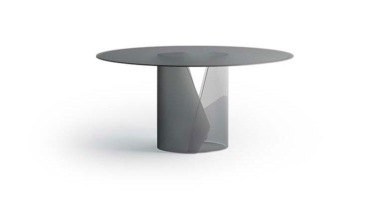 Carlo Colombo presents a coffee version and a dining version of the Cross Table: two sheets of glass bring together an elegant dual fumé and transparent effect, defining the base and revealing the spontaneity of the creative gesture. Glass top with “soft touch” finishing in smoke grey or bronze colour, coordinated with the base.