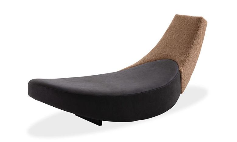 A precise sign cuts through space, bringing Leonardo Talarico’s sculptural approach to design into the home with the Halfmoon dormeuse. An essential and cosy object for rediscovering the pleasure of relaxation. With its almost oriental minimalism, Halfmoon lends itself to meditation and recalls the tangram in the intersection of its two main elements. Wooden and steel frame, cover in fabric or leather, base in matt black varnished wood.