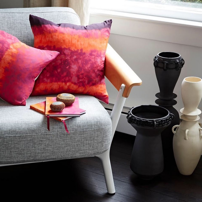 “I’ve always been inspired by craftsmen and makers,” Joseph says. “There’s something so special about things that are handmade.” Each of the items in the Altuzarra x Etsy line—from the rich, tie-dyed silk pillows sewn from repurposed Altuzarra runway collection fabrics to the show-stopping ceramic vases finished in a custom cognac-colored glaze—is not only a celebration of craftsmanship, it’s a way to bring warmth and delight into our everyday lives. “With the uncertainty we live with daily, being surrounded by objects and furnishings that give you a sense of comfort is so important,” Joseph says. “I wanted to create a collection that would bring people peace, joy, and happiness.”