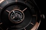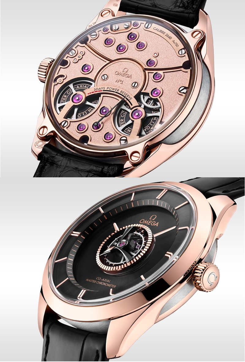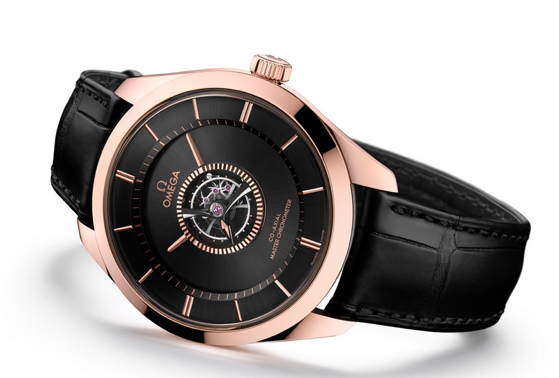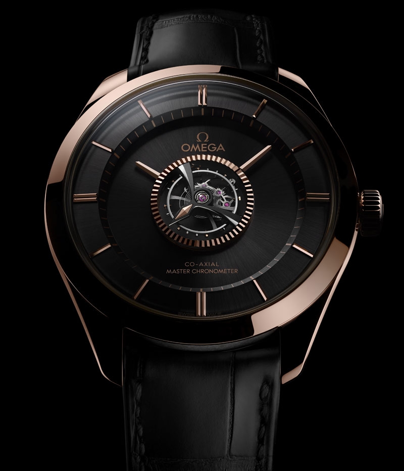 The sun-brushed dial is also in 18K Sedna™ gold, but has been given a captivating dark shade, thanks to its black PVD treatment. Also unmistakable at the centre of the dial is the tourbillon cage with hand-polished bevels in black ceramised titanium. This ingenious device drives the movements of the unique and mysterious hands, which give the timepiece its incomparable OMEGA style.