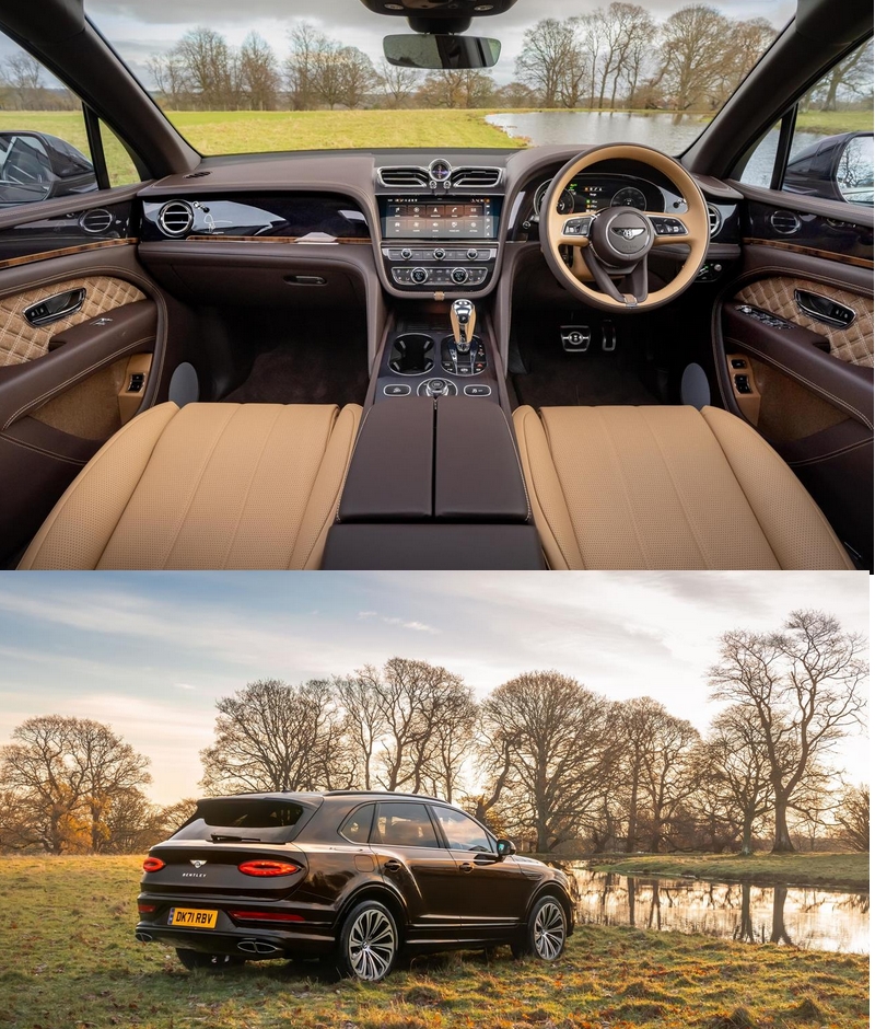 Each Bentley Bentayga luxury car combines a number of bespoke features including a woodland embroidery scene, hand cross-stitching to the main interior stitching and a unique chrome overlay to the passenger fascia that describes each outdoor theme. The new woven wool finish to the inside of the doors, seat back pockets, grab handles and further detailing around the instrument panel adds further depth of natural textures and materials to the already class-leading interior. Sand Herringbone Tweed has been selected to complement the interior design, with natural colour harmony with both the main and secondary leathers throughout the cabin. Paint colours Havana, Cumbrian Green and Magnetic have been chosen as the ideal exterior specification colours for this country-dwelling car.