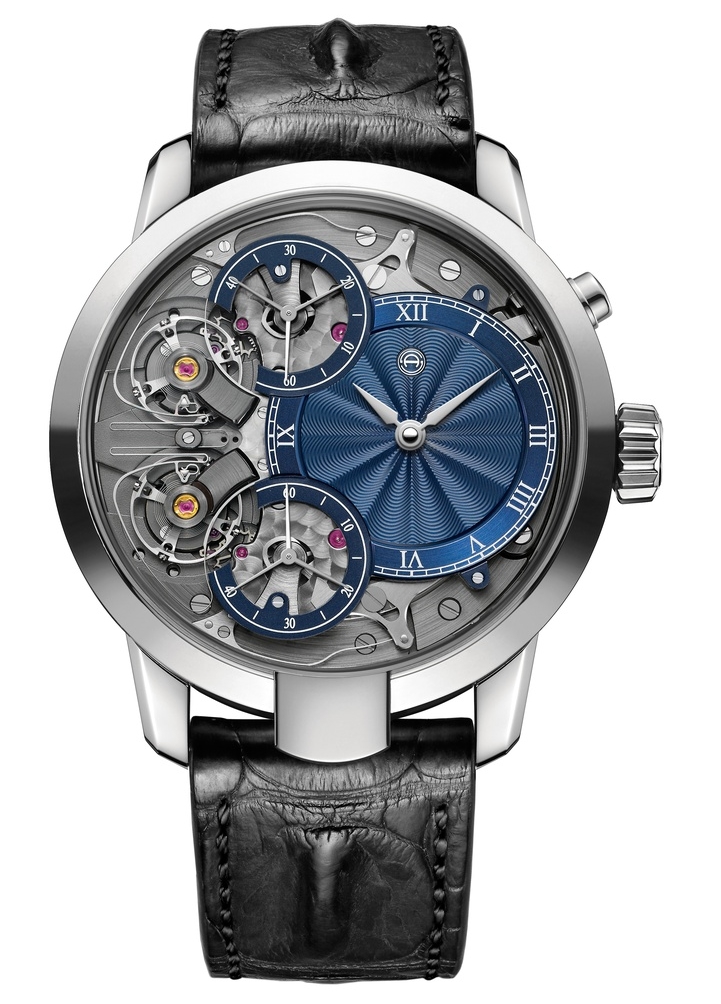 Creating a striking contrast with the high-tech movement, the guilloché dials will be available in multiple colors (blue, black, anthracite, red or bi-color), and in several different pattern options (sun-ray, concentric waves or barley corn), depending on the client’s wishes.