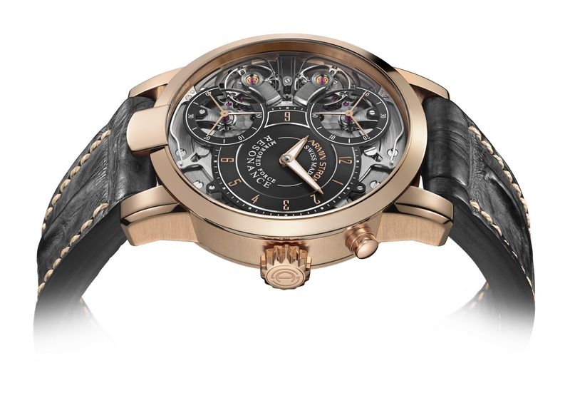 ARMIN STROM’s Mirrored Force Resonance contains more than just great mechanical design; this groundbreaking timepiece comprises an innovative, sophisticated mechanism created for the pursuit of precision in a way that has never before been seen in a wristwatch: the eminently visible animated resonance clutch spring that connects two oscillators, the most sensitive part of a watch’s movement. Thus, the top of the movement becomes a stage for the stars of the timekeeping show underneath a transparent dome of scratch-resistant sapphire crystal, putting the fascinating functionality of the oscillating balances squarely in the spotlight while simultaneously improving the watch’s precision using the phenomenon of resonance.