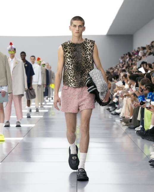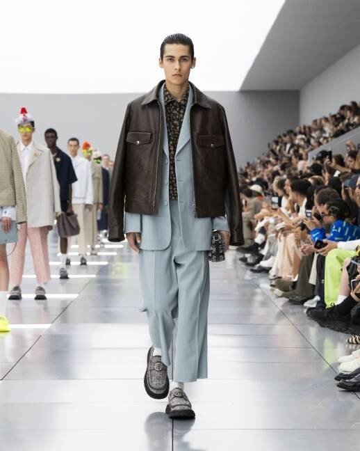 Kim Jones also introduces playful elements to the collection, with polos in vibrant colors, leopard prints, and eyewear infused with fluorescent accents. These touches of whimsy add a fanciful twist to the world of luxury menswear. The reinterpretation of the iconic 1995 Lady Dior bag inspires the footwear, featuring heavy-soled loafers adorned with a new circular logo. Additionally, the collection showcases the collaboration with renowned milliner Stephen Jones, who embellishes New Wave beanies with exquisite ‘Ronghua’ velvet flowers meticulously crafted by master artisans in China.