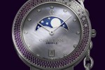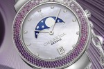 The wide bezel of this St-Tropez 35 GlamMoon is embellished with purple amethysts, pink sapphires and white diamonds in a delicate “dégradé“ setting.