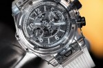 Nothing to hide, everything to show! The new Big Bang Unico Sapphire in complete transparency.Bezel, case, caseback and crystals: the case of the Big Bang Unico Sapphire is entirely made from the watch industry’s hardest material: sapphire. It is indeed so hard that only diamond can scratch it. One can thus easily imagine the difficulty involved in machining it to make a case and the hundreds of production hours required – especially with the complex shapes of the Big Bang.