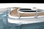 The Yacht Pool features some very obvious nautical styling cues, from the teak decking surrounding the integral hydrotherapy hot tub, to the polished steel handrails adorning each side of the stylised bow. Even the controls which operate the hydrotherapy jets are based on a pair of stainless steel marine throttle levers.