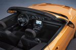 The newest interpretation – available only as a folding soft-top convertible in homage to the famously Mediterranean-like climate of “the Golden State” – reflects the original with a honeycomb front grille finished in Ebony Black and featuring a GT/CS badge in Race Red, as well as lower side stripes finished in black, red and grey. Incorporating GT/CS logos, the stripes run from the front to rear wings and feature a hidden “California Special” script that is almost invisible in low light conditions but becomes much more prominent in stronger sunlight.