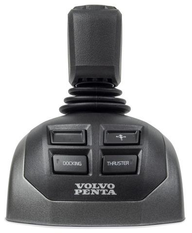 Docking a boat can be stressful. Now, similar to the joystick control found on larger multi-engine-installation vessels, easy single-hand control is available for smaller single-diesel-engine boats with Volvo Penta Aquamatic sterndrive installations. The captain simply presses the Docking button on the base of the joystick control, and boat maneuvering features – steering, gear control, bow thruster, throttle – are controlled easily with just one hand.