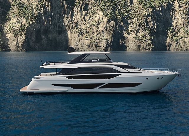 The result of collaboration between the Product Strategy Committee led by Mr. Piero Ferrari and the Ferretti Group Engineering Department, Ferretti Yachts 860 is the third yacht developed by architect Filippo Salvetti (exterior design) and Ideaitalia (interiors).