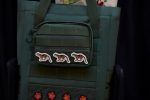 The Maison’s emblematic poppy is embroidered on denim, escaping from a vase-like pocket, painted on shoes or woven as a thick knitwear ornament. Kenzo Paris labels in the same poppy red embellish the sleeve of a suit, add a signature to a bag or play across both sides of a tie. Kenzo’s tiger code turns tame in a new Aka-e Tiger watercolor motif created by Nigo for comforting contemporary feline fleece scarves. Bags include reversible pouch bags embroidered with maps of Japan on one side and France on the other, another affirmation of the unique ties between the two cultures as Maison Kenzo embarks on a new creative chapter in its history.