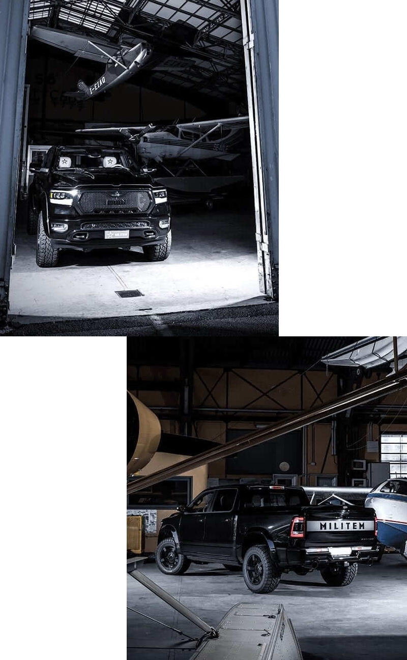 Militem’s in-house engineering team has developed solutions aimed at tweaking the models’ set-up and ride, as well as fine-tuning engine performance. The line-up includes Ferox (based on Wrangler JL,), Hero (based on Jeep Renegade) and Magnum (based on RAM 1500).