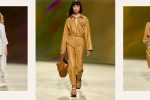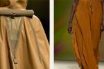 The morning’s earthy shades illuminate technical and nomadic Hermès clothing. The back of a trench coat unfurls, silk knit molds to each movement, cords and rings deconstruct the look.