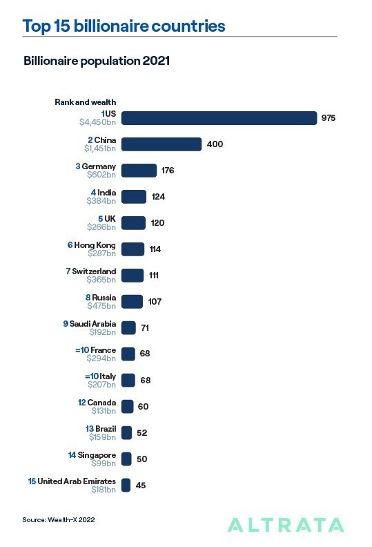 Top 15 billionaire countries – Billionaire Census 2022; @altrata.com/