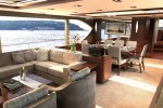 The OA 100 has formal dining for eight while maintaining an enormous salon seating space. There’s a wet-bar in the salon in addition to a day head on the main deck for ease and convenience. Forward of the galley is a very large settee area for relaxed seating and casual dining.