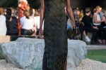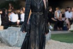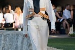 Fifty looks, from sandy Star Wars-esque flowing robes to Xena the Warrior Princess-style hotpants, took a sunset parade around the swimming pool, where giant Perspex speaker towers and towering palm trees were dotted among guests seated with views over the Coachella valley.