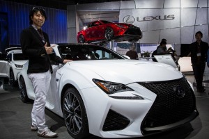 Lexus RC F Chief Designer Hirai is all smiles next to his latest creation at the Los Angeles Auto Show.