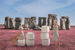 When spring comes to an end in the south of England, we conclude the itinerary by playing at building structures with the new Costuras poufs. A mischievous wink in front of the enormous Stonehenge leaves us with a most striking image in which the first collaboration between Teresa Sapey and Diabla becomes a co-star. This megalithic monument is famous for how the sun is positioned in the axis of the construction during the winter and summer solstices, slipping with extraordinary precision between its stones and generating quite a spectacle.
