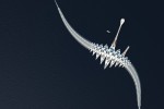 The advantages offered by the adaptive shape of MORPHotel makes it possible for it not only to reach the harbour cities, adapting itself morphologically to the territory, but also to become it itself an independent aquatic organism. In fact, given its massive proportions (the whole spine is one kilometre long) it can become a floating harbour during its long ocean crossings; it does this by spiralling into itself and generating an artificial bay where boats and ships can find shelter.