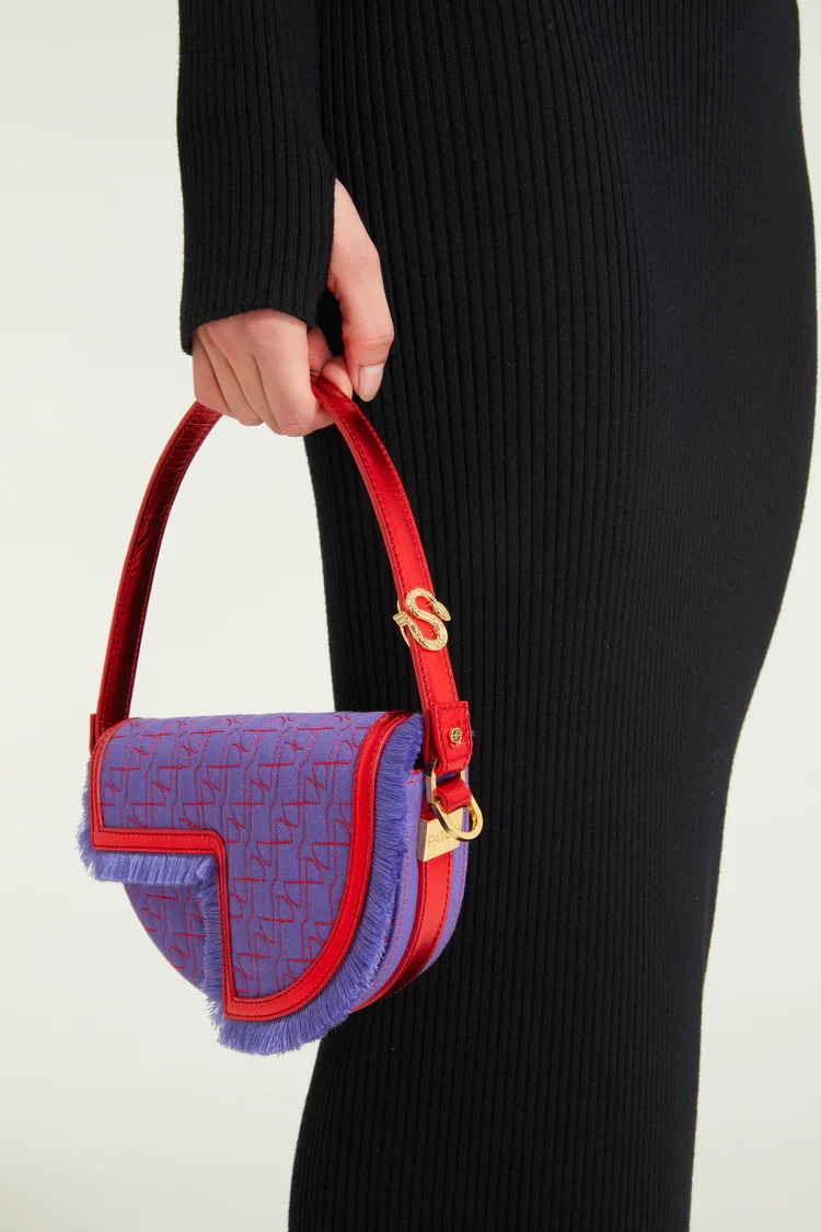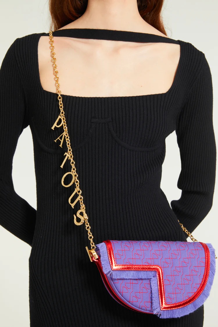 Patou’s emblematic Le Petit Patou bag has been given two new colors and delicious details thanks to the creative inspiration of Sita Abellan. The acclaimed Spanish DJ and stylist chose pink for the first version and a purple-blue-red combination for the second. The half-moon shape of Le Petit Patou is crafted in denim effect recycled organic cotton and upcycled metallic leather. With topstitching for the JP monogram, long fringes and eye-catching details, Le Petit Patou is ready for mornings or special evenings alike. All the leather has been sourced from premium deadstock leather to ensure both luxe and durability for the unique bags.