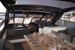 The central and aft areas are also interconnected and the space can be completely covered by an awning to shade the dining area of the main deck, which comfortably accommodates eight people.