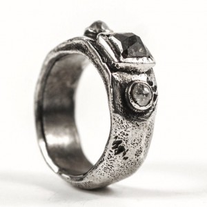 Rosecut Black Diamond flanked by 2 Grey Salt and Pepper Diamonds