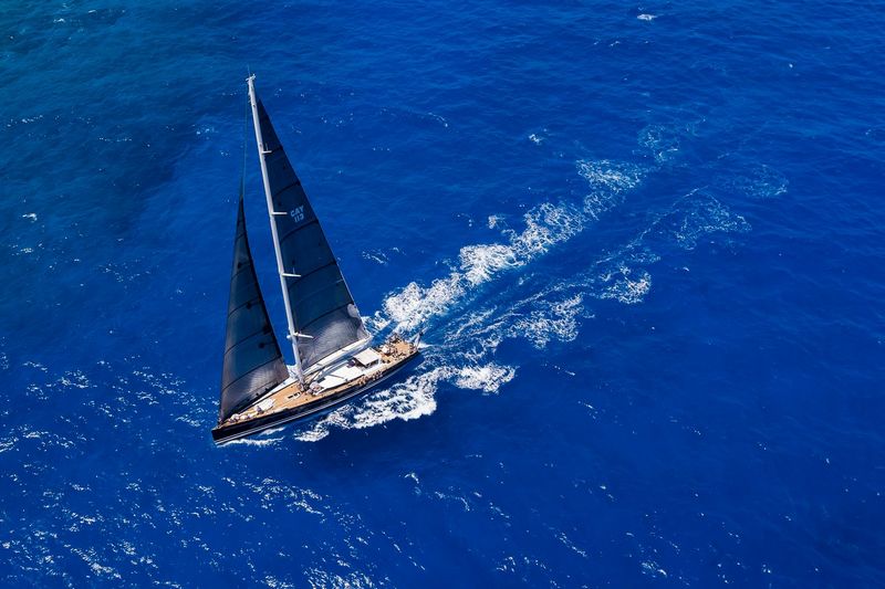 The imposing carbon fibre Rig includes a 51.40m mast combined with 14m furling boom and composite standing rigging for a sail area that exceeds 1870sqm.