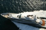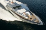 The new Pershing 115’ features an additional Vericor TF50 gas turbine, typically used in the aeronautical sector, with a central water-jet propeller producing an additional 5,100 hp, for a total top speed of 52 knots.