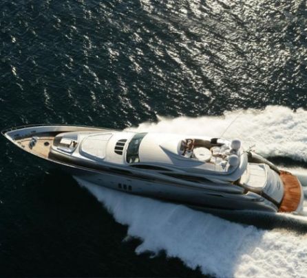 Pershing 115 motor yacht is powered by two diesel MTUs with the total of 7400 hp together with the applied thrust of the two Kamewa Rolls Royce water-jet propellers with a maximum velocity of about 38 knots.